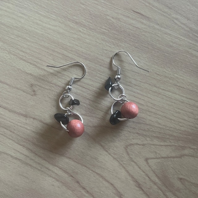 マゼンタピンク系のカルセドニーとブラックビーズのイヤリングです。 ※ピアスに付け替え可能です。 ご購入の際、備考欄に「ピアス希望」とご明記ください。