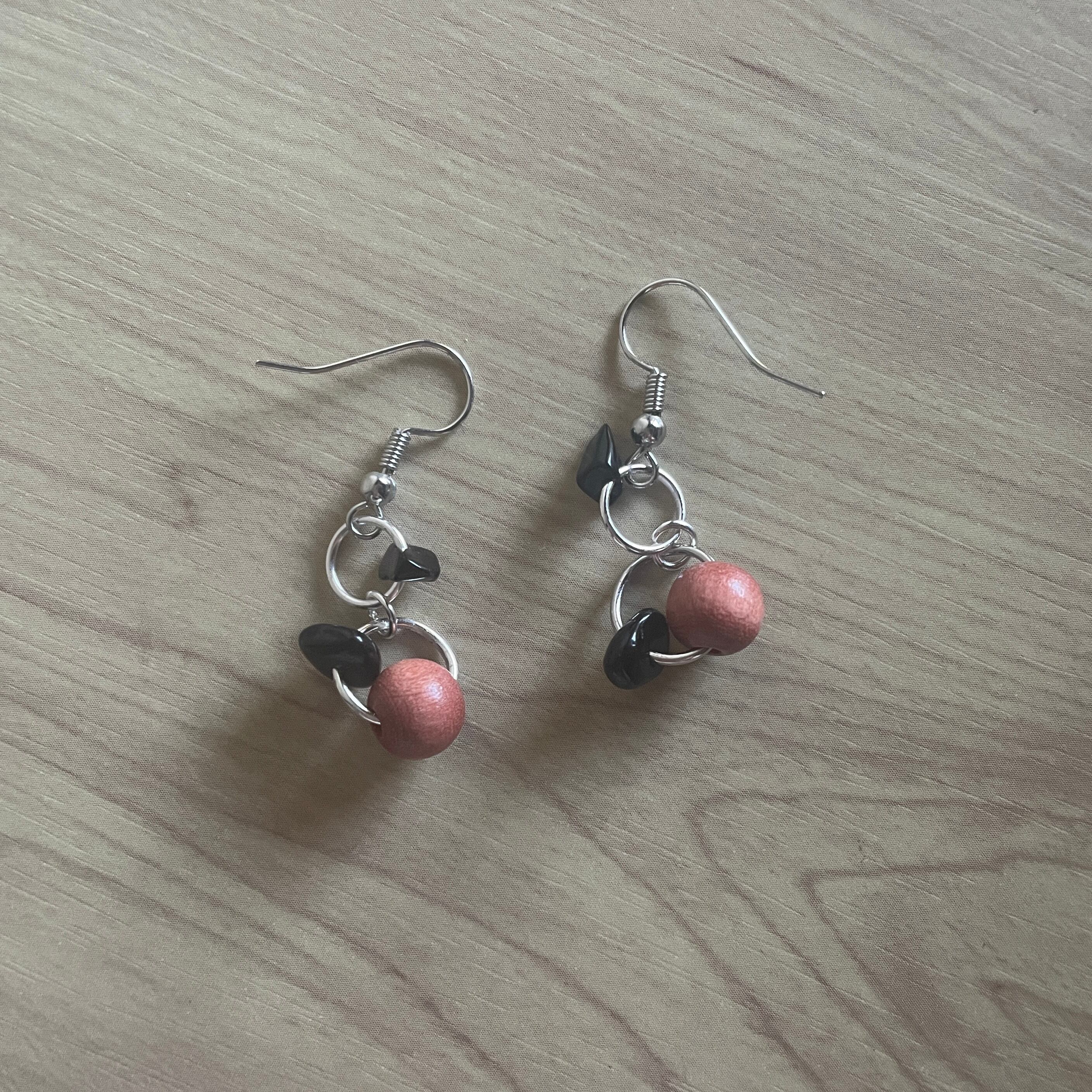 素材:オニキス、ウッドビーズ、ピアス金具、Cカン