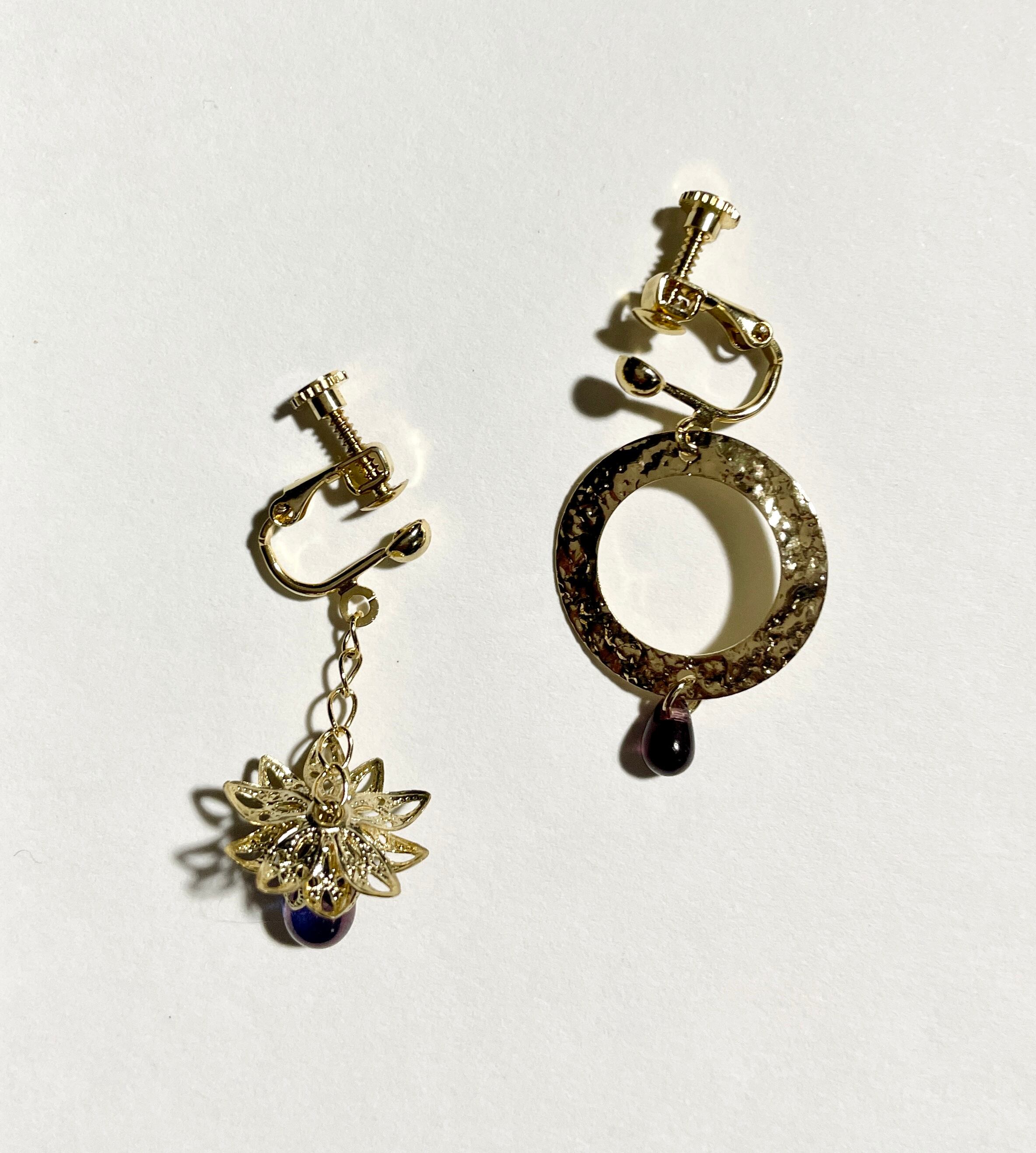 雫ビーズのアシンメトリーイヤリング(ピアス)